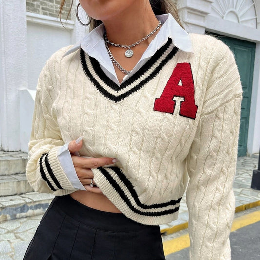 V-neck Youthful Campus Younger Knitted Shirt Slim Striped Long Sleeve