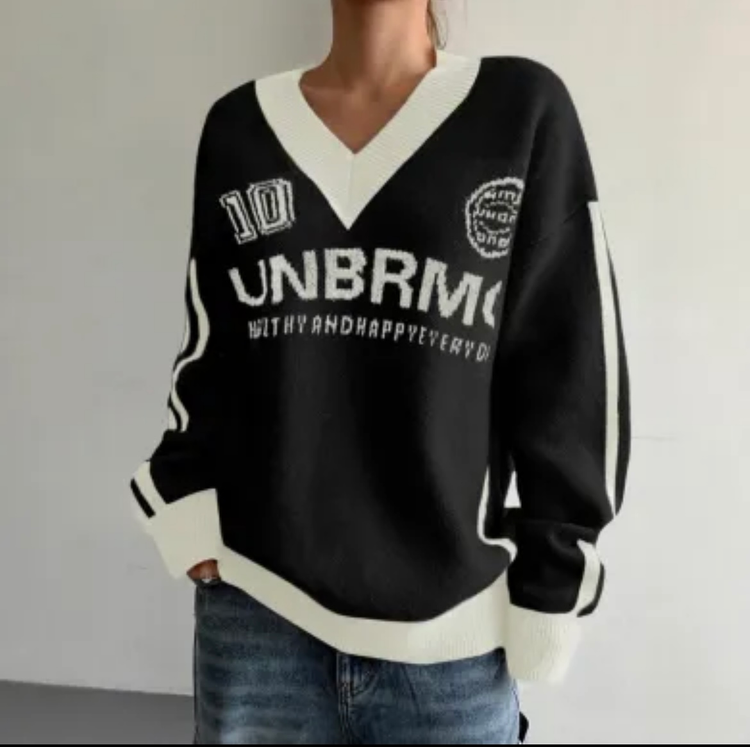 Hot Girl Loose Preppy Style Casual Contrast Color Lazy Sweater